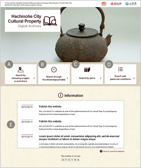 Cultural property data can be searched from Hachinohe City map and the period /era.
